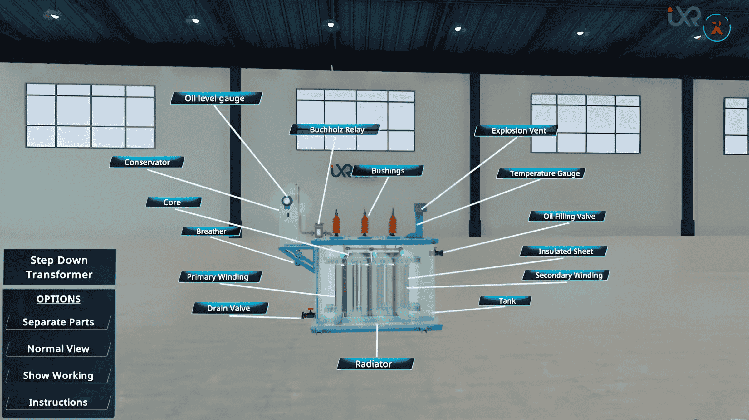 In VR, students can experiment with different input and output voltages, load variations, and even fault conditions to see how the transformer responds.